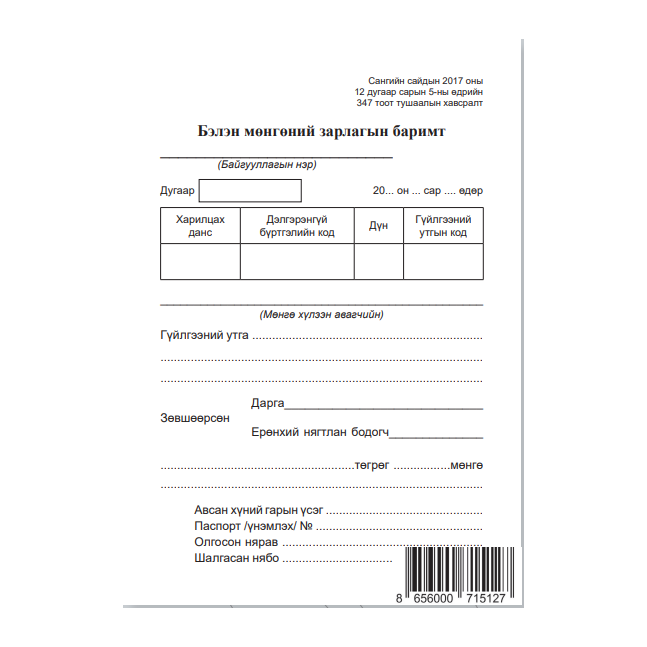 Сангийн сайдын 2017 оны 347 дугаар тушаалын хавсралт