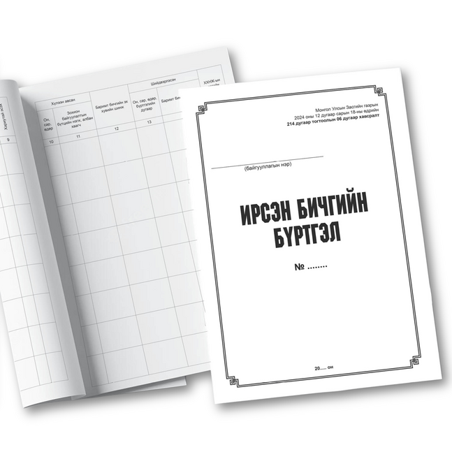 Ирсэн бичиг баримтын бүртгэл A4