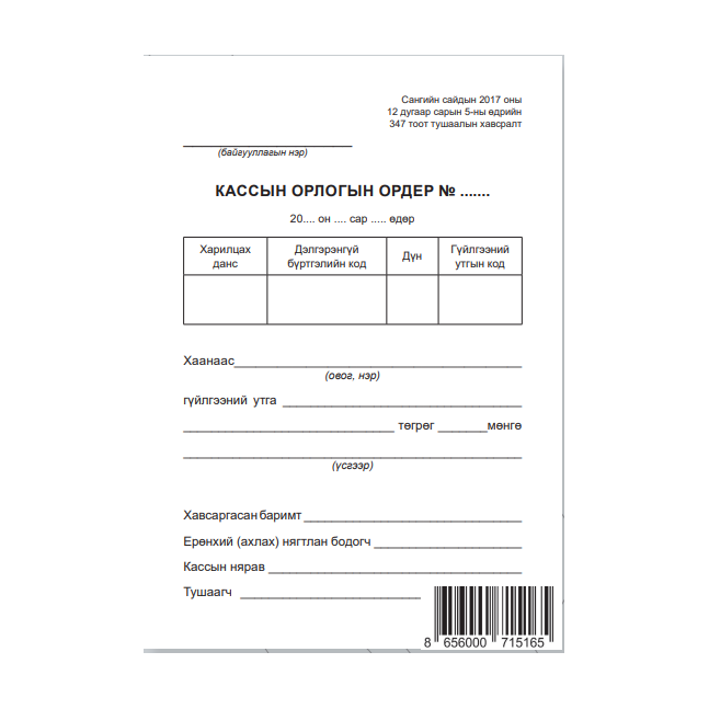 Кассын орлогын ордер А6 2%